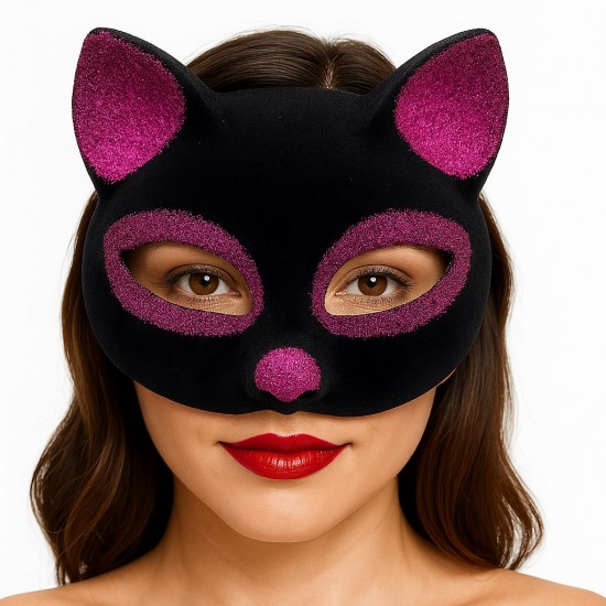 Siyah Renk Fuşya Simli Süet Kedi Maskesi ile Sevimli ve Eğlenceli Bir Görünüm Oluşturun!