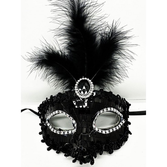 Siyah Renk Payetli Pullu Tüylü Parti Maskesi