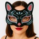 Siyah Renk Mavi Kırmızı Simli Süet Kaplama Kedi Maskesi ile Kostümünüzü Tamamlayın