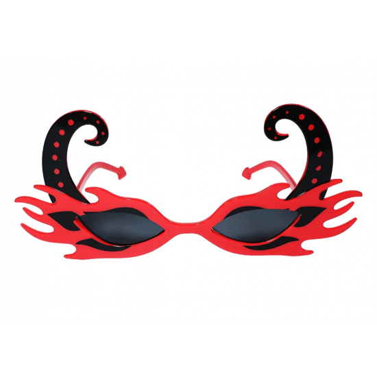 SiyahBoynuzluKırmızıRenkAlevliPartiGözlüğü21x10cm