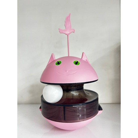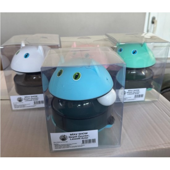 Hacıyatmaz sistemi sayesinde oyuncak devrilmez, her darbede tekrar ayağa kalkar ve mama çıkışı sağlayarak kedinizin ilgisini sürekli canlı tutar.