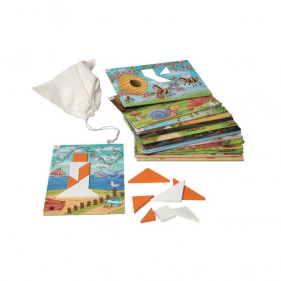 Kutu içerisinde; Her biri 7 tahta parçadan oluşan 2 set halinde pamuklu bir torbada 15 tane kopyalamak için kart ve çözümleme içeren yönerge yer almaktadır.